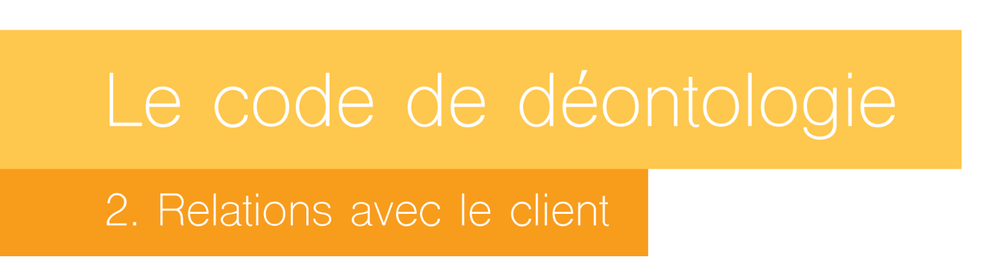2.1 Lors de l’exercice d’activités professionnelles avec des clients, à quelque titre que ce soit, les membres adoptent